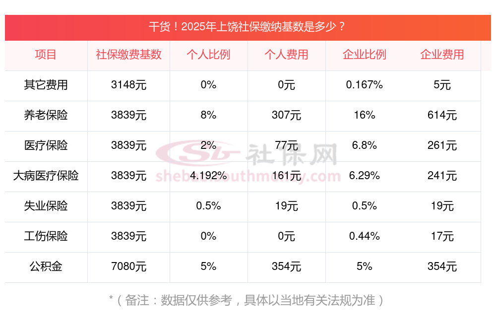 上饶社保缴纳情况是怎样的?一起和新社小编一起来看看下面的明细表: