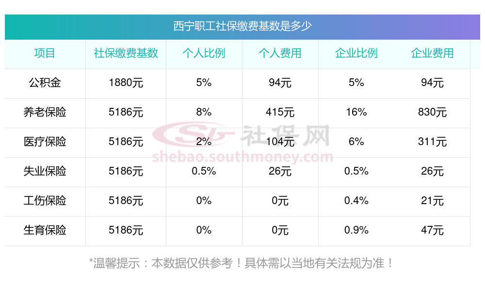 西宁社保缴纳情况是怎样的?一起和新社通一起来看看下面的明细表: