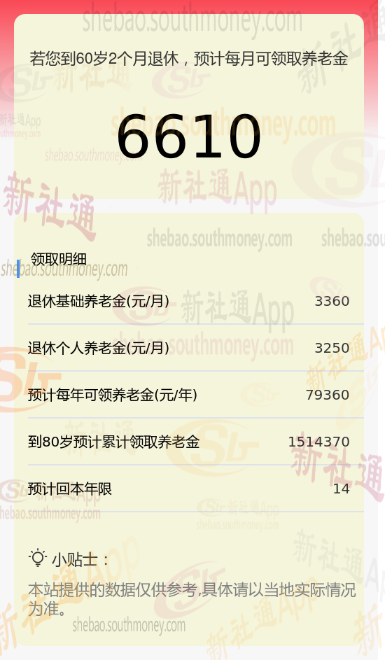 新社通app养老金计算器计算所得:
