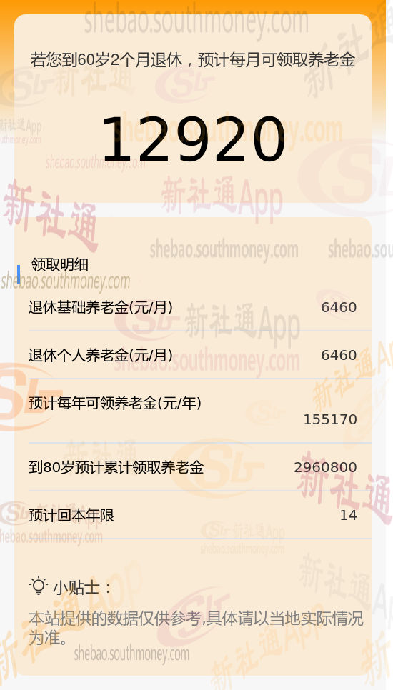 新社通app养老金计算器计算所得: