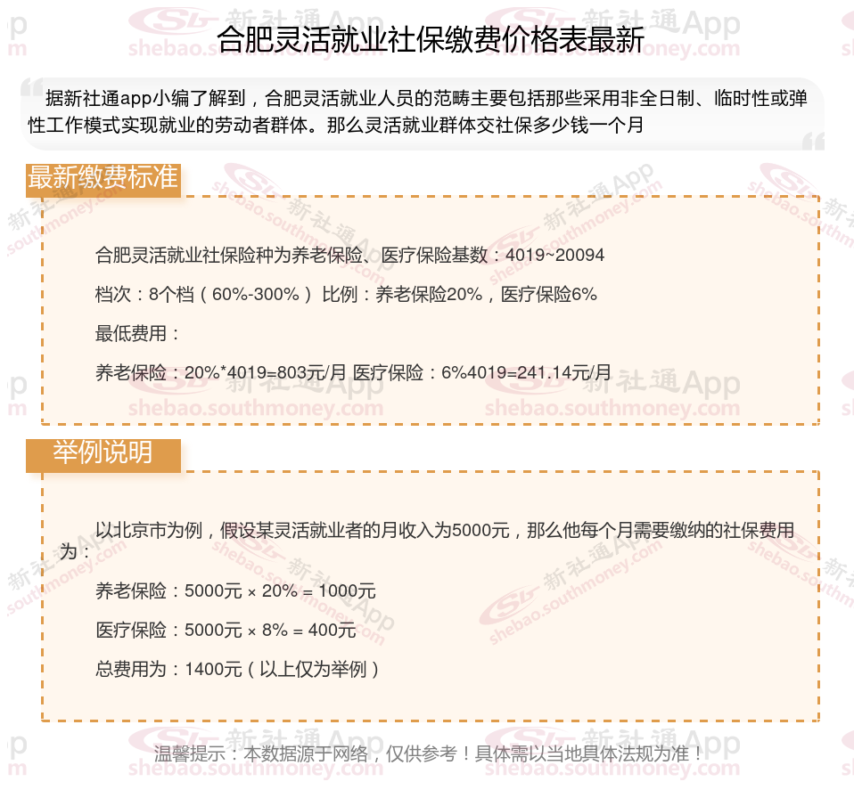 合肥灵活就业社保险种为养老保险、医疗保险基数:4019~20094