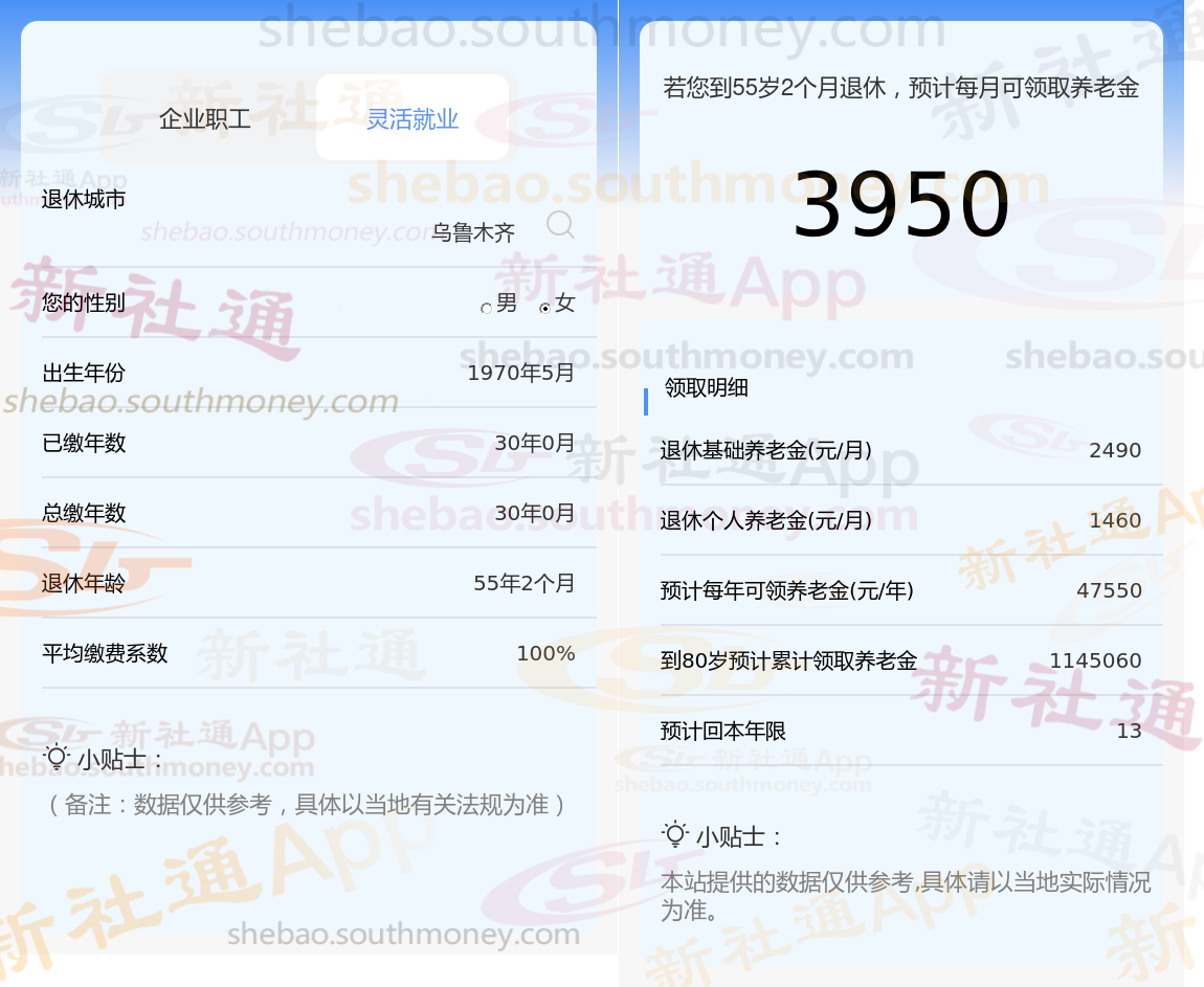 每月可领养老金=基础养老金+个人养老金≈2490+1460≈3950元。