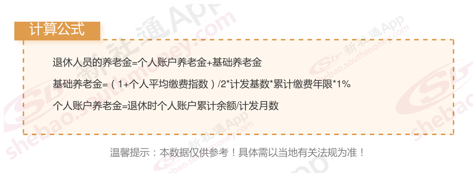 个人账户养老金=退休时个人账户储存额÷本人退休年龄相对应的计发月数。