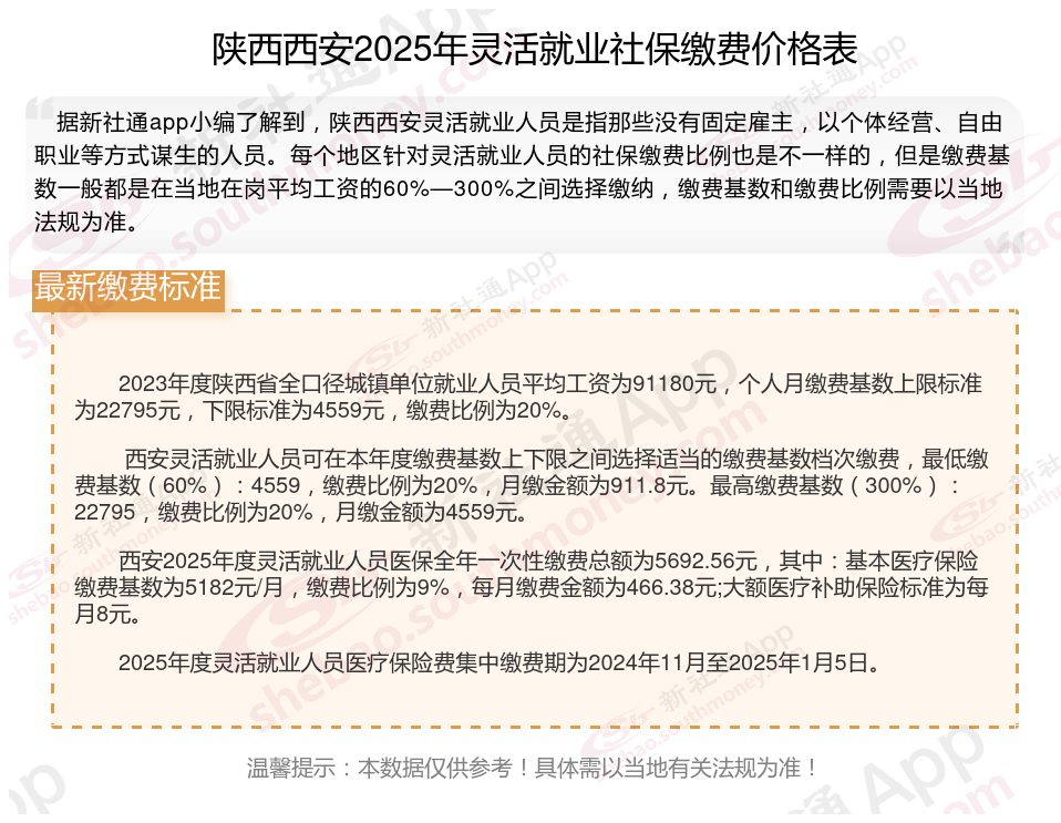 那么,社保自由职业缴费需要多少钱一个月呢?根据新社通app-社保缴费查询工具提供的2025社保缴费标准详情数据: