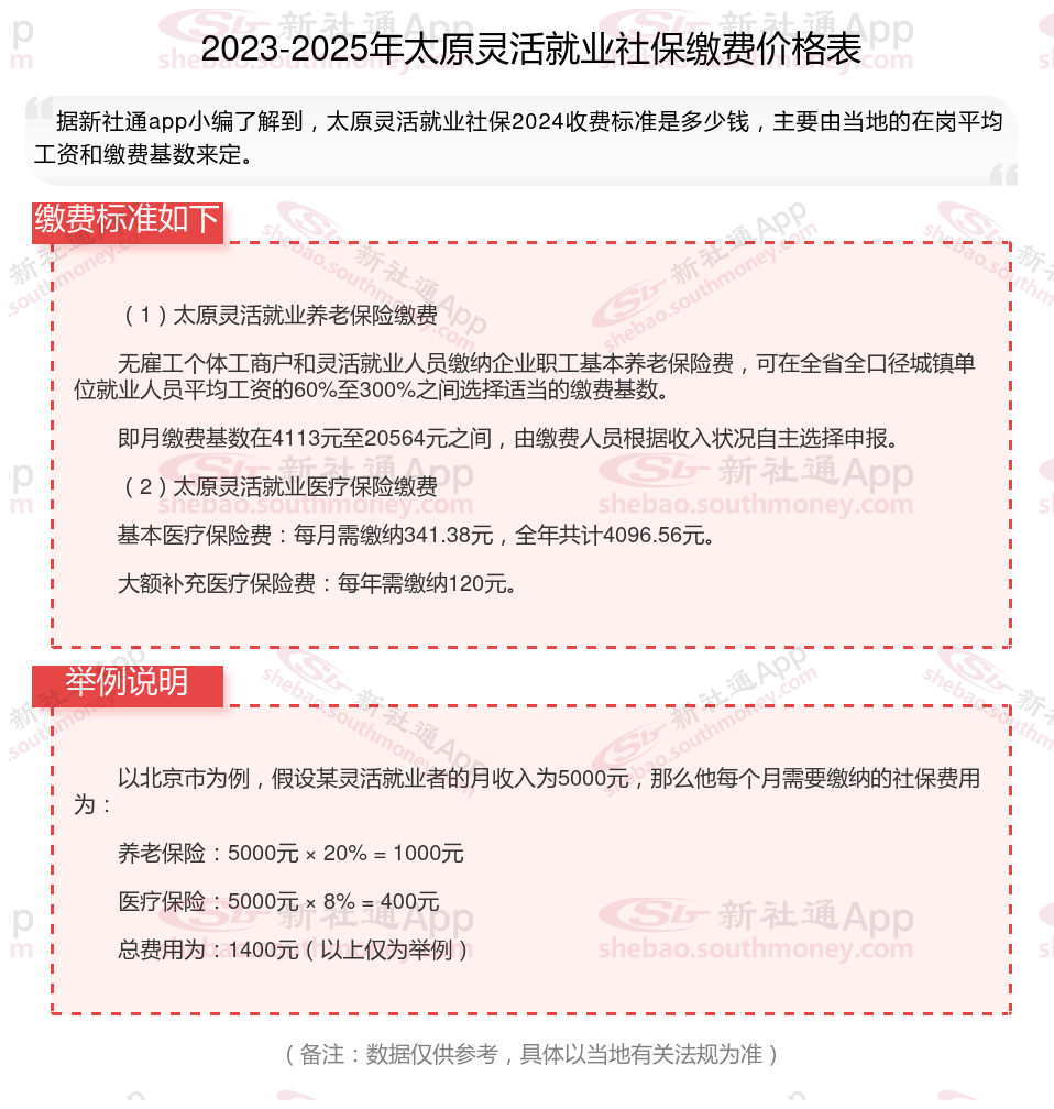 据新社通app数据显示,太原灵活就业人员养老保险缴费基数2024-2025年最新标准如下: