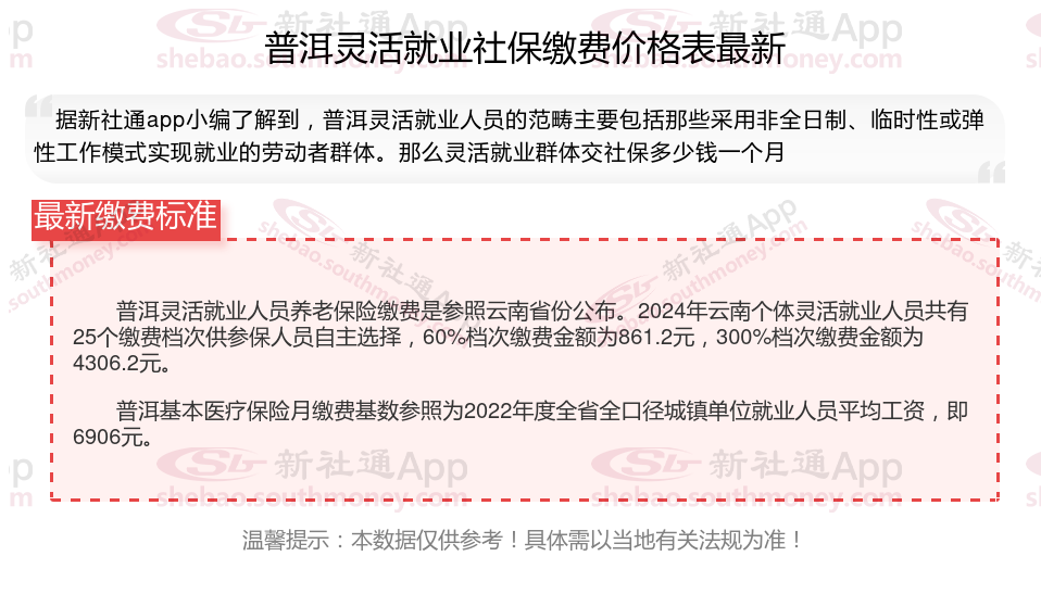 普洱灵活就业人员基本养老保险缴费基数暂按不低于4306.2元;