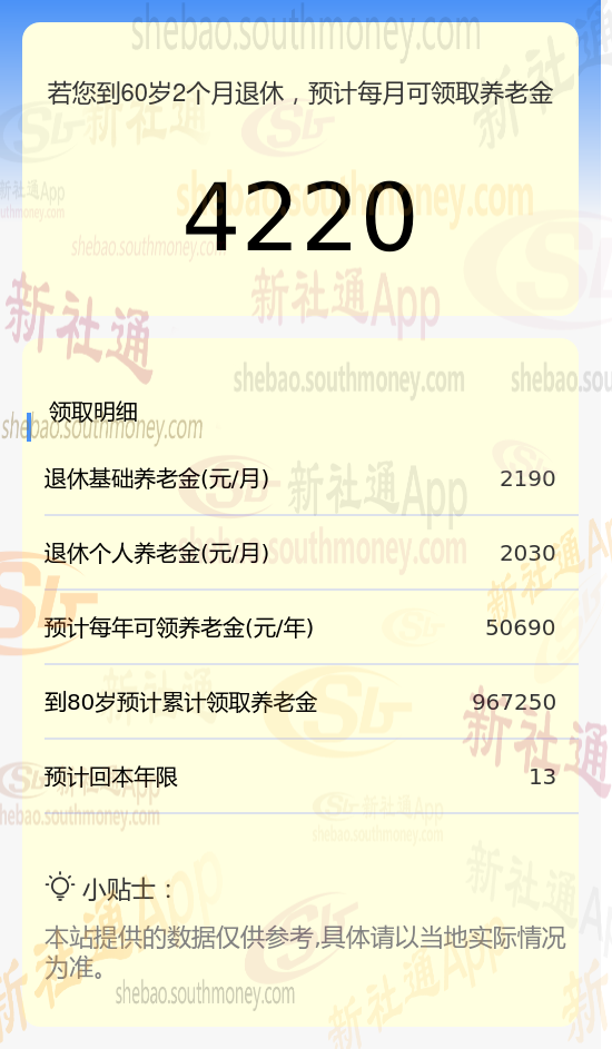 每月可领退休工资待遇合计:2190+2030≈4220元。