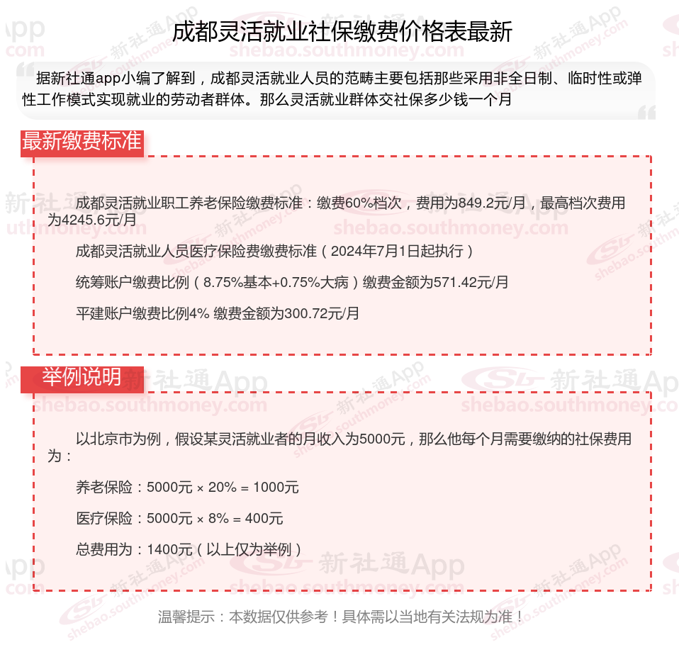 据新社通app数据显示,成都灵活就业养老保险最低缴费基数为:4511元;个人的缴费比例分别为:20%;