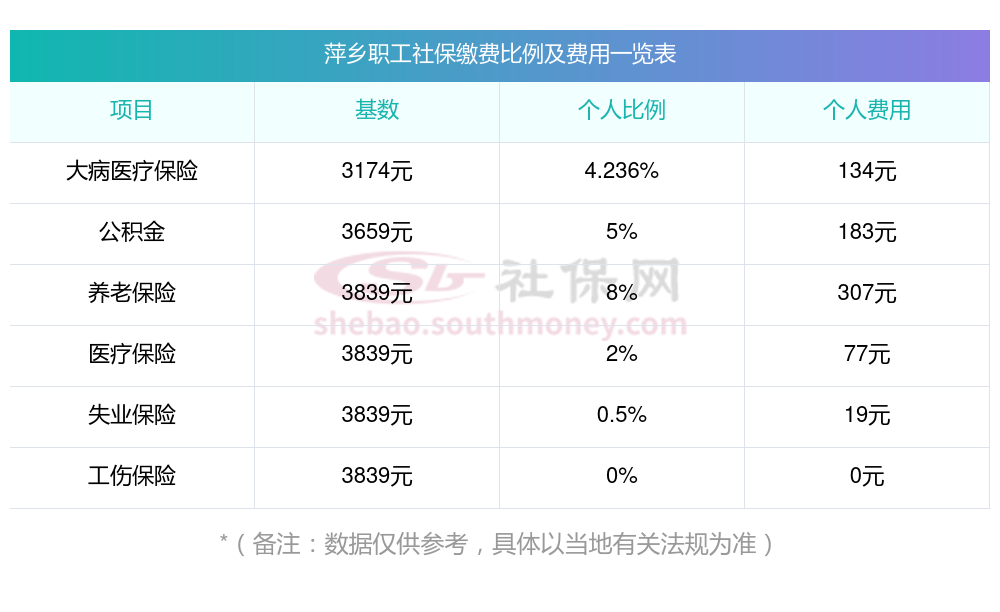 萍乡社保缴纳情况是怎样的?一起和社保丫丫一起来看看下面的明细表: