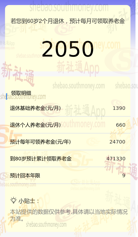 柯某,湖北黄石人,1965年出生,是一名拥有18载社保缴费年限的退休男性,缴费档次稳定在80%。岁月流转,他终于迎来了自己的退休时光。借助新社通app养老金在线计算器计算所得: