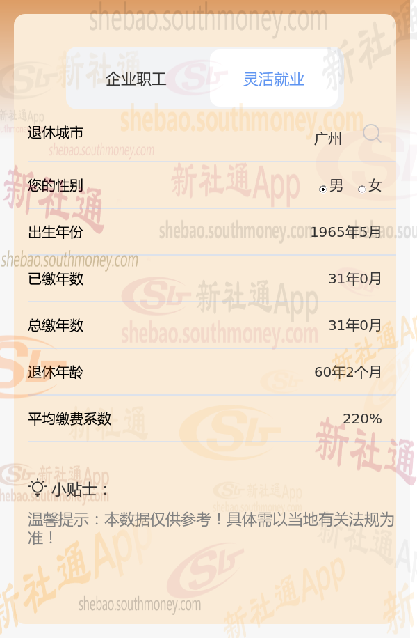 近期,有一位来自广州的已退休男性,灵活就业社保人员通过后台询问,即将步入退休了,累计工作年限为31年。每月按照220%档位缴纳。他想知道,基于这些信息,他养老金如何计算呢?并且是否能够达到8900元。