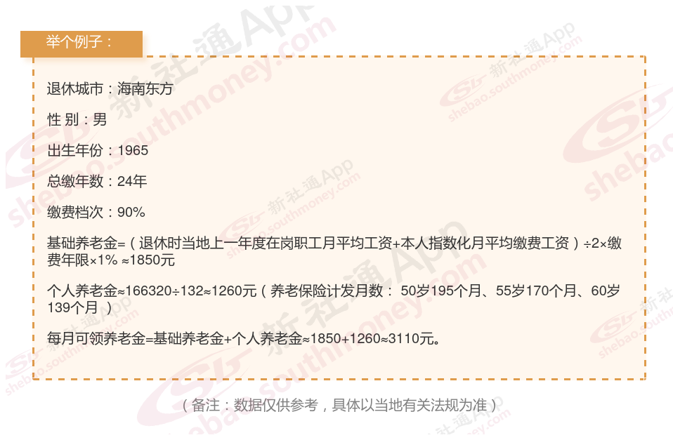 王某,一位1965年出生的男性,现已在海南东方退休的情况,他的养老保险详情及预计养老金计算如下:
