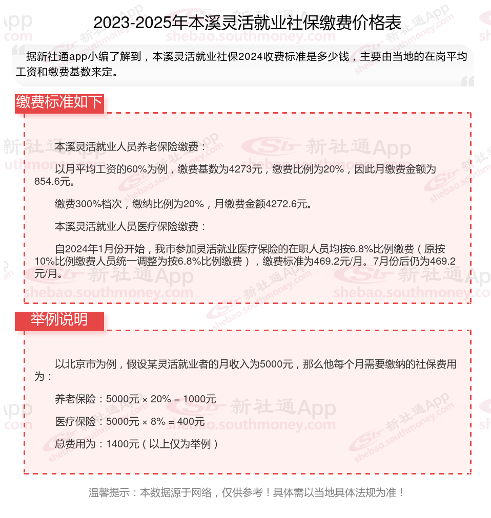 据新社通app数据显示,本溪灵活就业人员养老保险缴费基数2024-2025年最新标准如下: