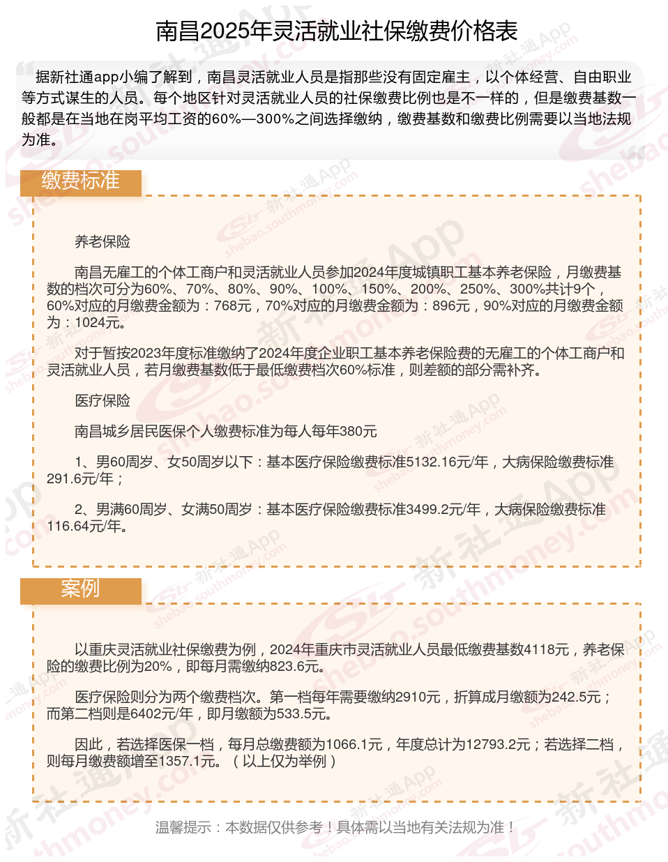 南昌社保缴费多少钱?下表是2024-2025年南昌社保费用明细参考,根据新社通app-社保缴费查询工具提供的最新数据如下: