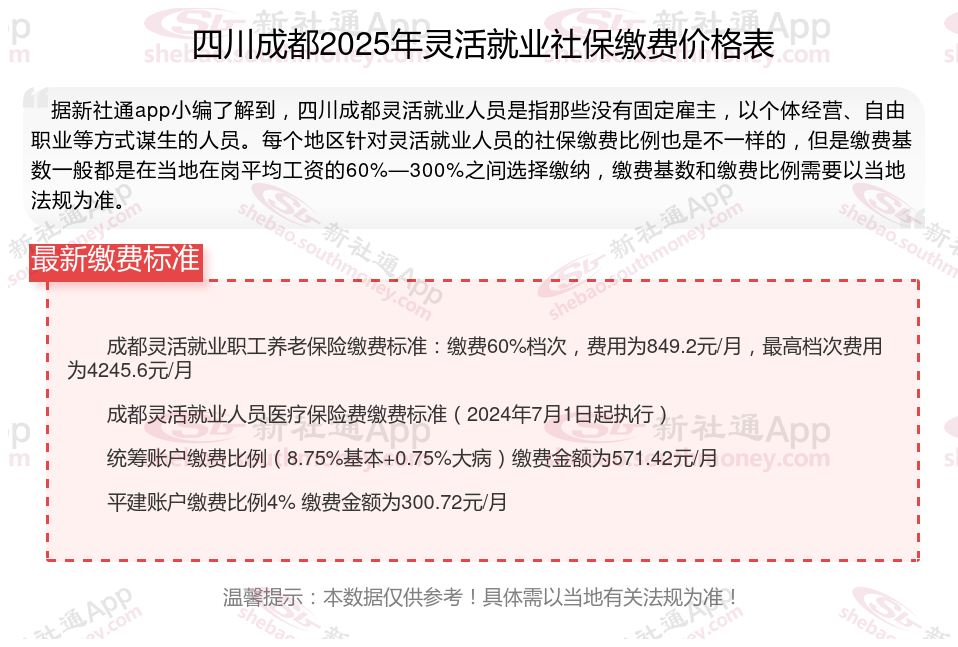 自由职业交社保一个月多少钱?根据新社通app-社保缴费查询工具提供的2025社保缴费标准详情数据如下: