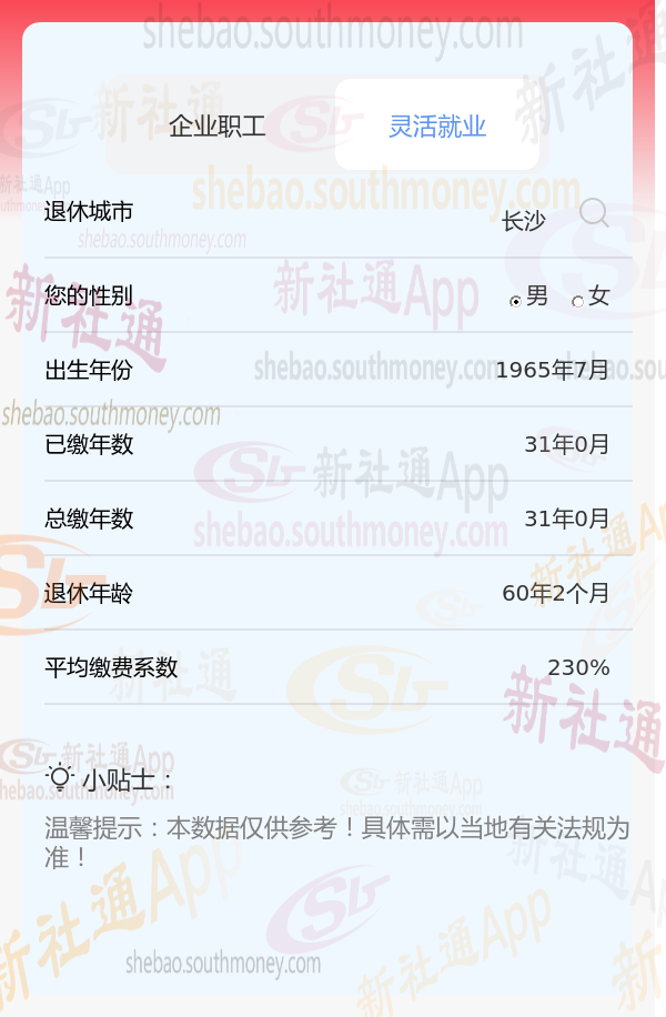 新社通app养老金计算器计算所得: