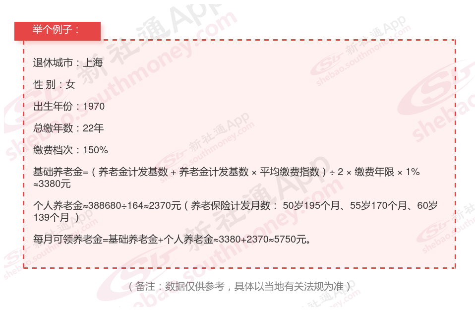 1.基础养老金:(当地的当年养老金计发基数+当地的当年基础养老金计发基数×平均缴费指数)÷2×缴费年限×1%;