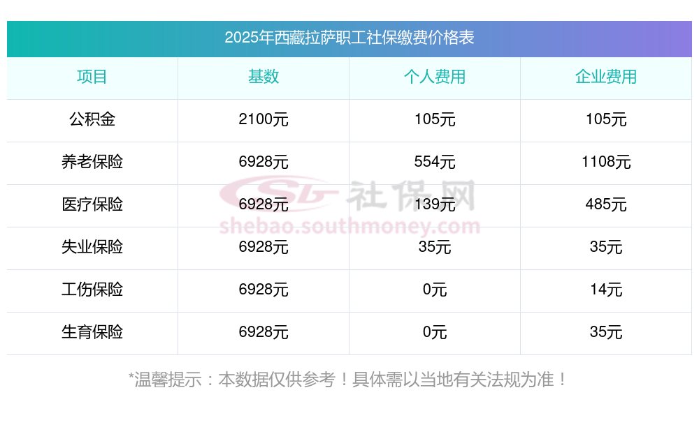 西藏拉萨社保缴纳情况是怎样的?一起和新社通一起来看看下面的明细表: