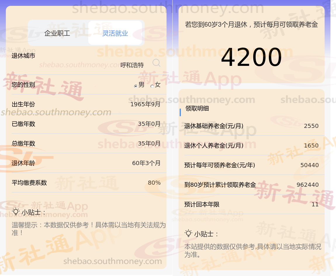 基础养老金=(参保人员退休时上一年度当地职工月平均工资+本人指数化月平均缴费工资)÷2×个人累计缴费年限×1%。