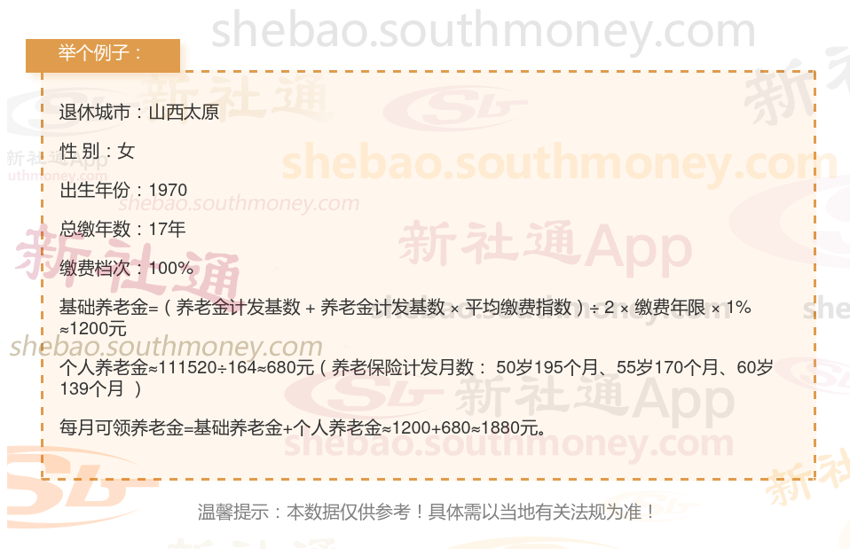 新社通app养老金计算器计算所得: