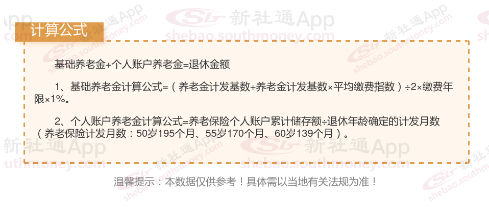 计算方法可能会因地区法规的不同而有所变化。例如,不同城市的平均工资水平、缴费基数以及计发月数等都可能影响最终的养老金计算结果。因此,对于具体的养老金计算,可以使用提供的在线养老金计算器进行测算,以获取更准确的结果。以上就是退休养老金的全部内容,如你对社保相关知识感兴趣,欢迎关注社保君解锁更多专业资讯!