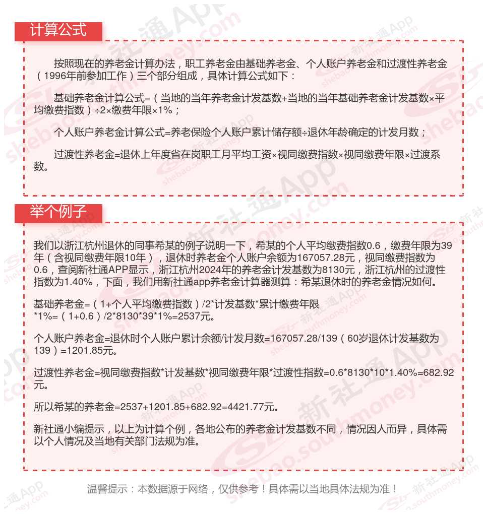 第一,基础养老金=退休养老金计发基数×(1+本人平均缴费指数)÷2×缴费年限×1%。