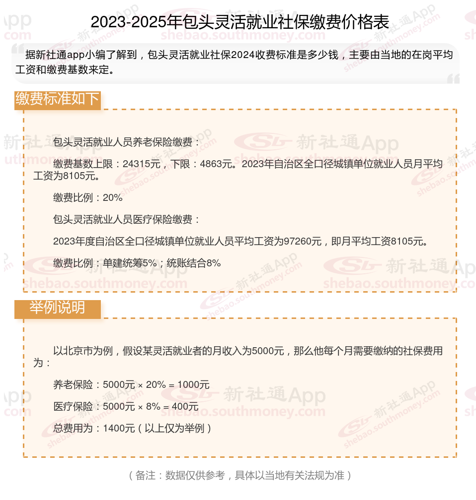 据新社通app数据显示,包头灵活就业养老缴费基数明细如下: