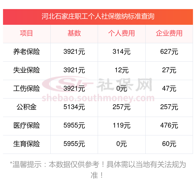 河北石家庄社保缴纳情况是怎样的?一起和新社丫丫一起来看看下面的明细表: