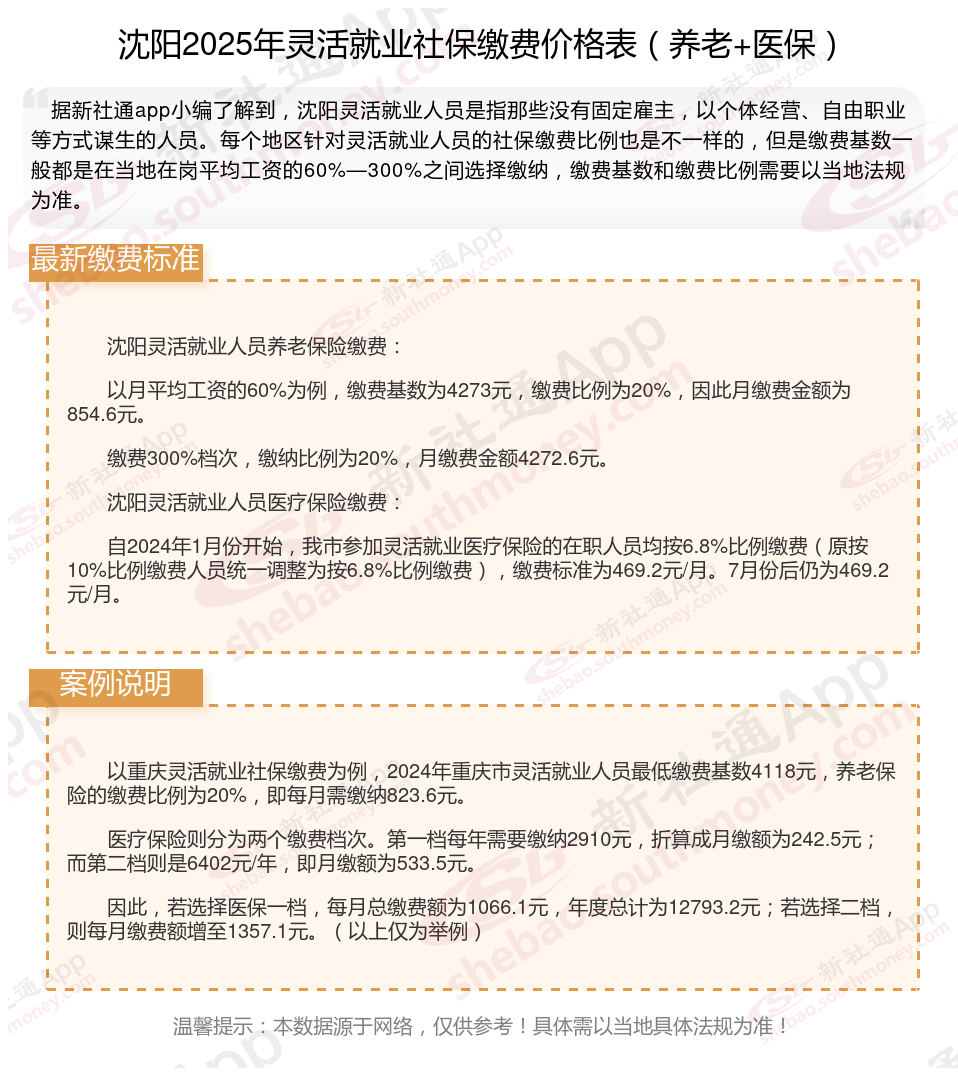 据新社通app数据显示,沈阳企业灵活就业养老保险的缴费基数为:4273元。