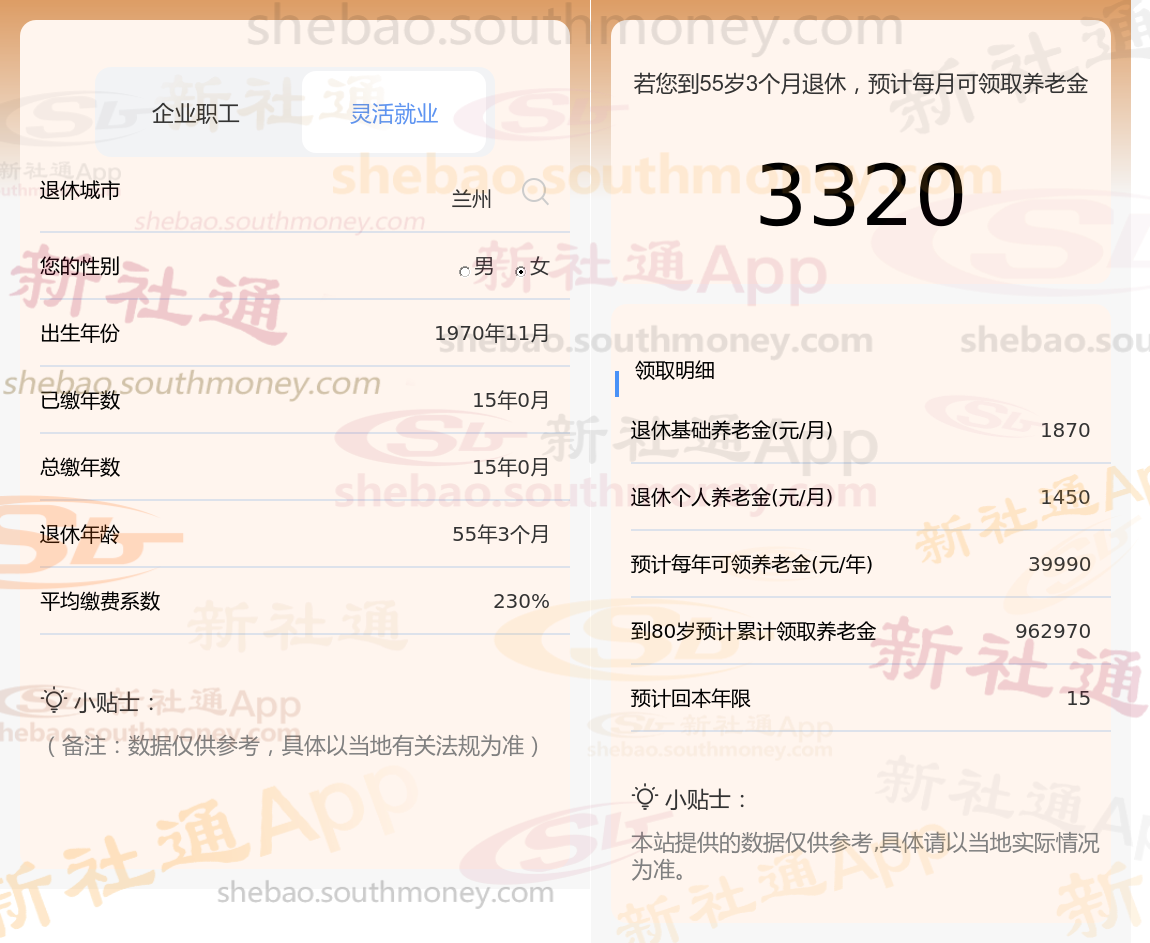 通过上面公式和社保网-APP根据新社通app-社保缴费查询工具提供的最新数据一起来了解下,甘肃兰州退休养老金怎么算?