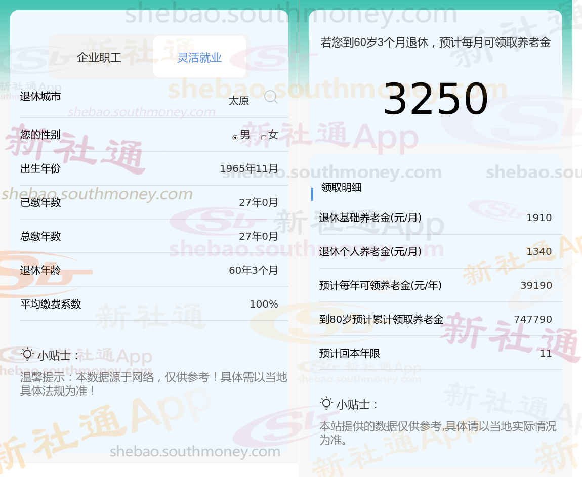 太原的一位男性灵活就业退休人员向我们发起了咨询。他出生于1965年,工龄长达27年,一直以来他都按照100%档位缴纳养老保险。他十分关心自己退休后每月能领取的养老金数额,并询问我们根据他的情况,养老金是否能超过3100元。