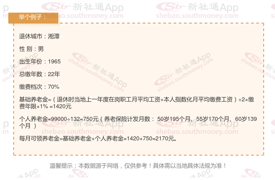 新社通app养老金计算器计算所得: