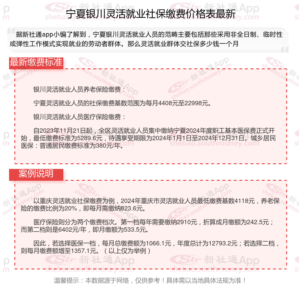 宁夏灵活就业人员的社保缴费基数范围为每月4408元至22998元。