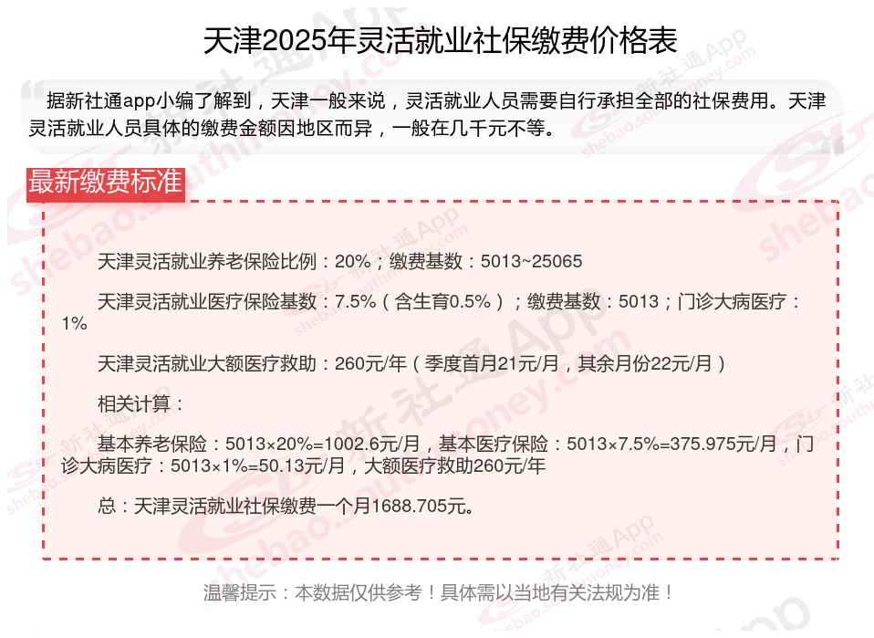 总:天津灵活就业社保缴费一个月1688.705元。