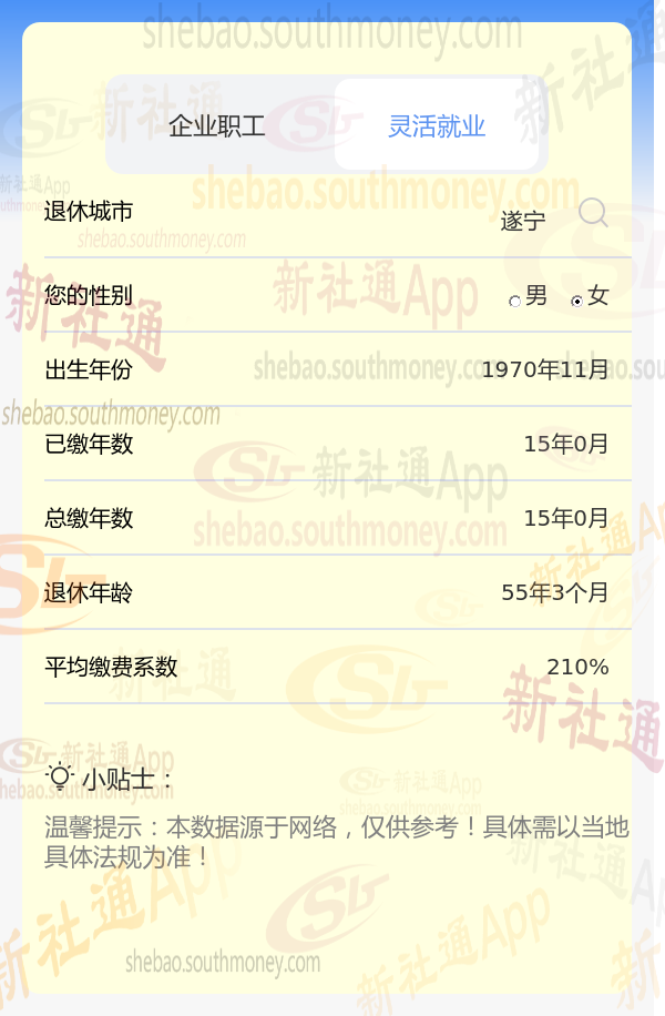 和社保丫丫一起看个例子,遂宁工龄15年养老退休金如何计算?