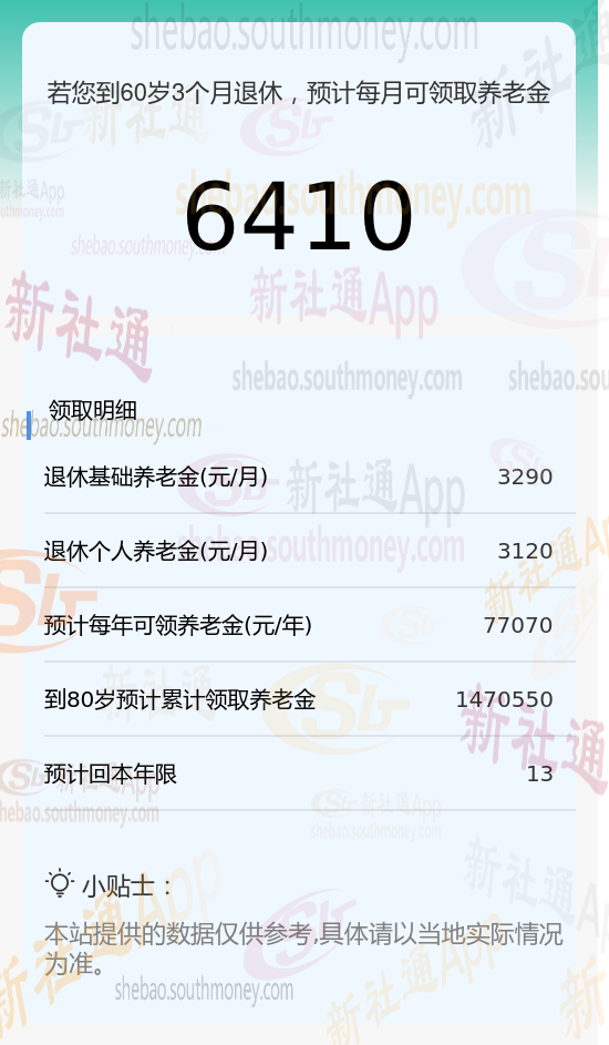 新社通app养老金计算器计算所得: