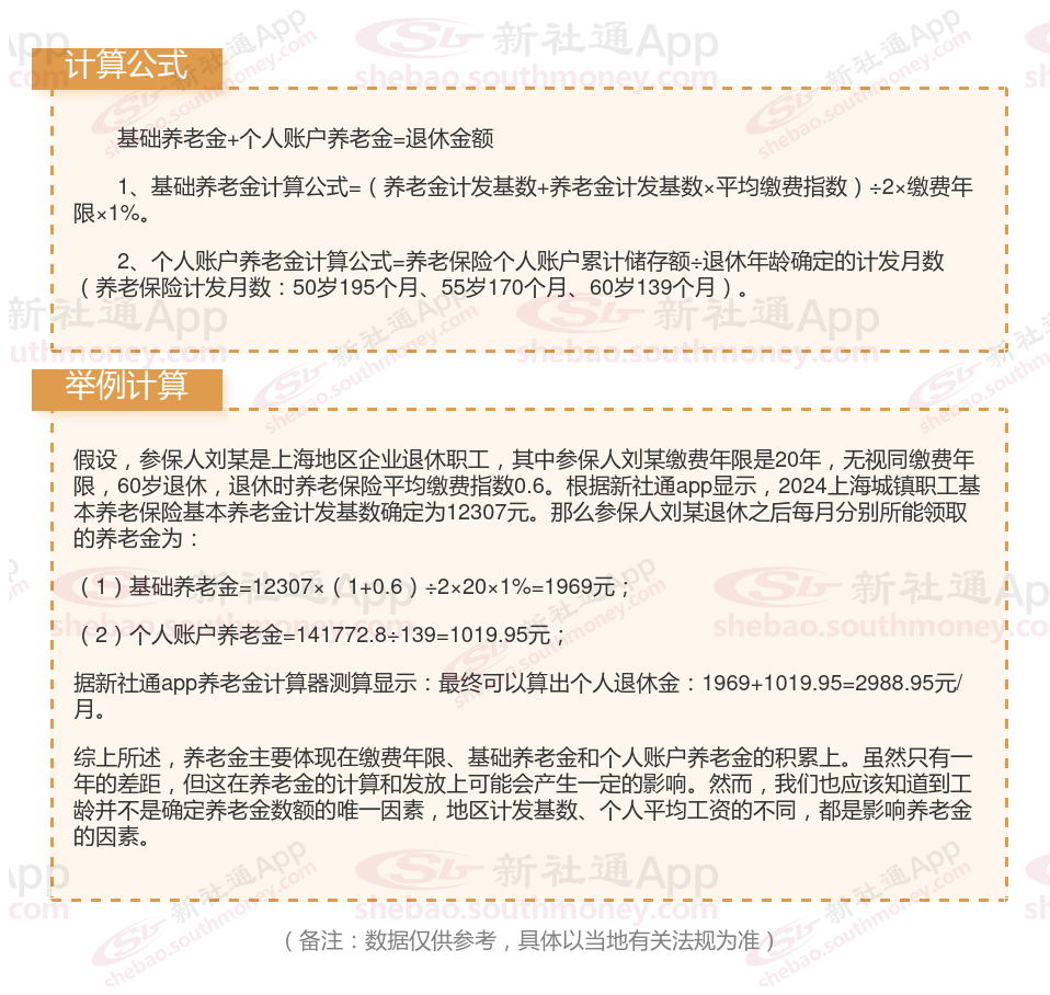 养老金计算方法说明基础养老金的计算:基础养老金按照参保人退休前一年本职工作月平均工资和参保人月平均缴费工资指数计算。