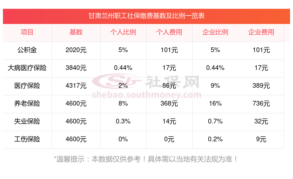 甘肃兰州社保缴纳情况是怎样的?一起和社保小编一起来看看下面的明细表: