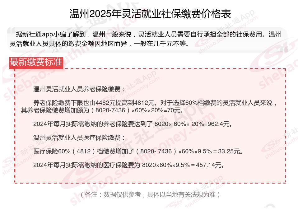 据新社通app数据显示,温州灵活就业养老保险缴费基数2024-2025年最新标准如下: