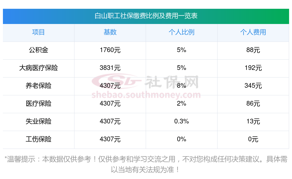 社保缴纳比例一览,社保公司和个人各交多少?下表是2023-2024年白山社保费用明细参考,新社通app-社保缴费查询工具提供的最新数据如下: