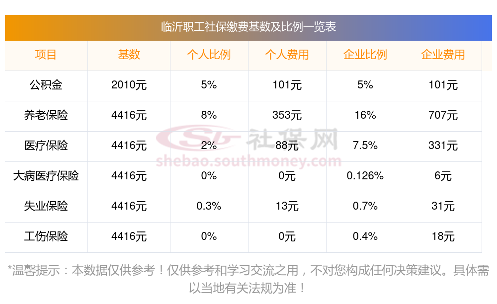 社保缴纳比例一览,社保公司和个人各交多少?下表是2023-2024年临沂社保费用明细参考,新社通app-社保缴费查询工具提供的最新数据如下: