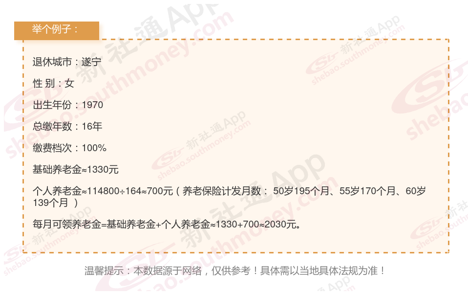 个人基础信息:女性,1970年出生,遂宁退休人士,拥有16年的缴费年限,缴费档次为100%。