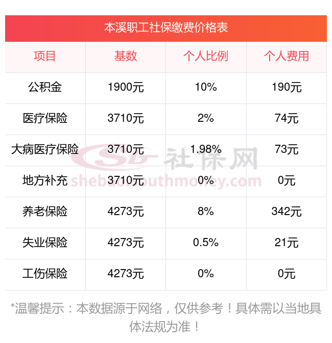 本溪社会保险一个月要多少钱?下面和社保网-APP一起来看看2024-2025年本溪最低标准社保费用明细参考,新社通app-社保缴费查询工具提供的最新数据如下: