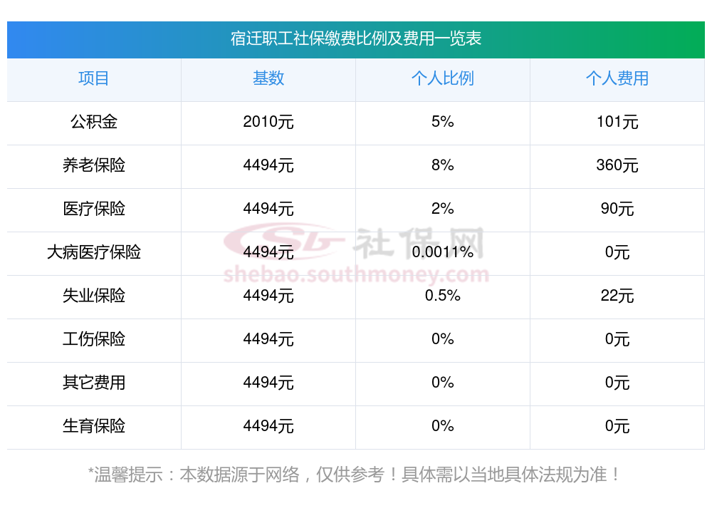 五险一金扣多少?宿迁五险一金扣多少钱?下表是2024-2025年宿迁社保费用明细参考,新社通app-社保缴费查询工具提供的最新数据如下: