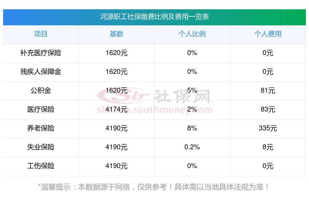 河源社保各基数的缴费比例是多少?和新社通一起来看看,新社通app-社保缴费查询工具提供的最新数据如下: