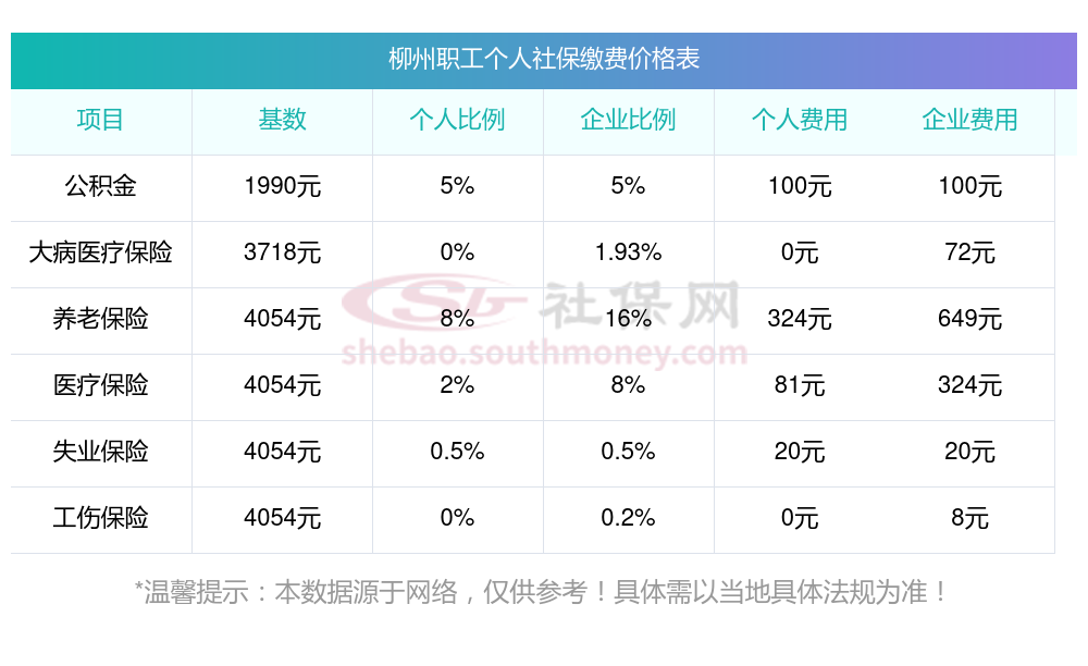 2025年柳州社保缴费多少钱?下表是2023-2024年柳州社保费用明细参考,新社通app-社保缴费查询工具提供的最新数据如下: