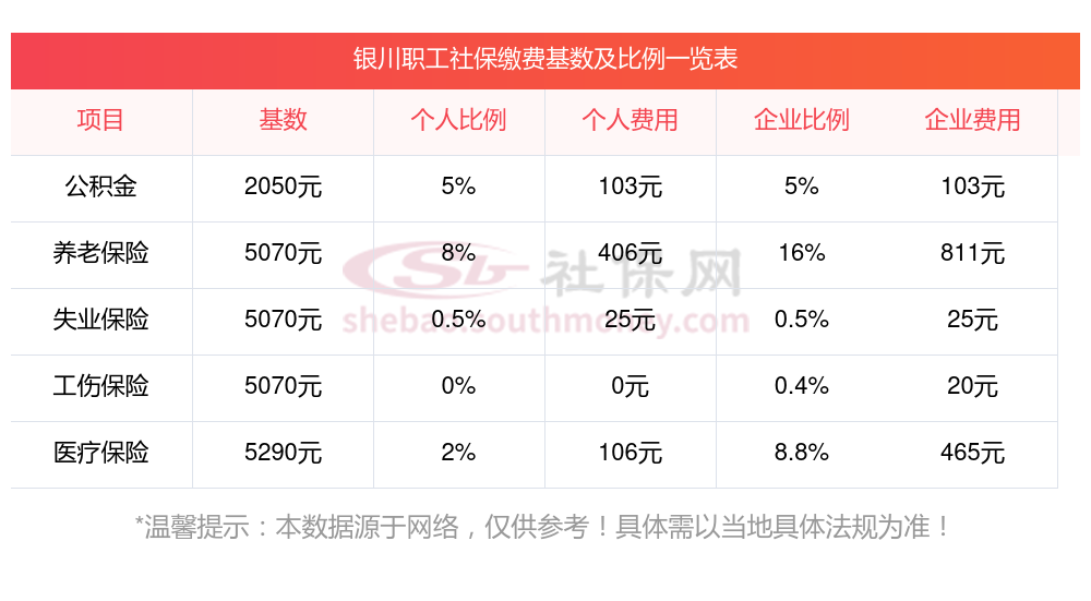 银川五险最少要交多少钱一个月多少钱?下表是2024-2025年银川社保费用明细参考,新社通app-社保缴费查询工具提供的最新数据如下:
