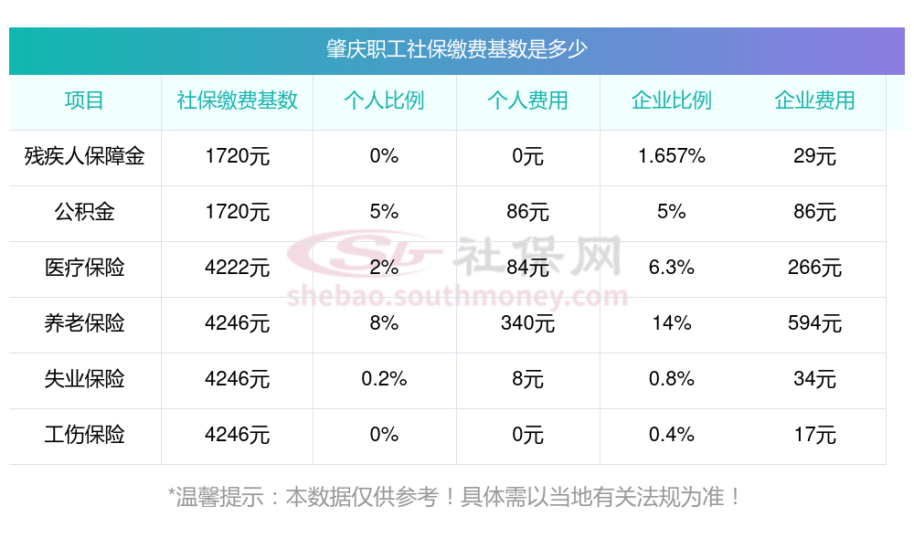 2025年肇庆社保缴费多少钱?下表是2023-2024年肇庆社保费用明细参考,新社通app-社保缴费查询工具提供的最新数据如下: