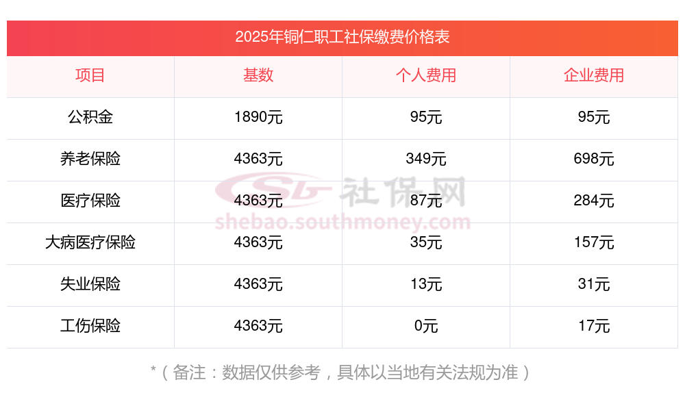 2025年铜仁社保缴纳比例,2025年铜仁社保缴费多少钱?下表是2024-2025年铜仁社保费用明细参考,新社通app-社保缴费查询工具提供的最新数据如下: