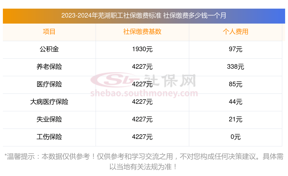 芜湖缴费社保比例一览社保公司和个人各交多少?下表是2024-2025年芜湖社保费用明细参考,新社通app-社保缴费查询工具提供的最新数据如下: